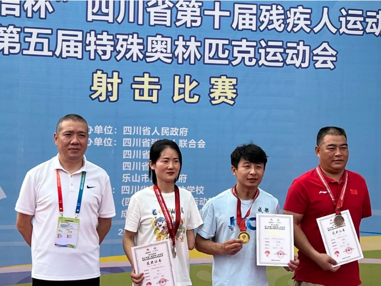 7月8日, 由四川省人民政府主辦,四川省殘疾人聯(lián)合會(huì)、四川省體育局、四川省教育廳以及樂(lè)山市人民政府承辦,四川省陸上運(yùn)動(dòng)學(xué)校、成都市金牛區(qū)文化體育和旅游局協(xié)辦的“四川農(nóng)信杯”四川省第十屆殘疾人運(yùn)動(dòng)會(huì)暨第五屆特殊奧林匹克運(yùn)動(dòng)會(huì)射擊項(xiàng)目比賽在四川省陸上運(yùn)動(dòng)學(xué)校開(kāi)賽。此次比賽為期4天,共有來(lái)自成都、樂(lè)山等6個(gè)市代表隊(duì)22名運(yùn)動(dòng)員參賽,共同角逐21個(gè)項(xiàng)目獎(jiǎng)牌,最終成都市代表隊(duì)以8金7銀2銅的優(yōu)秀成績(jī)位列榜首。